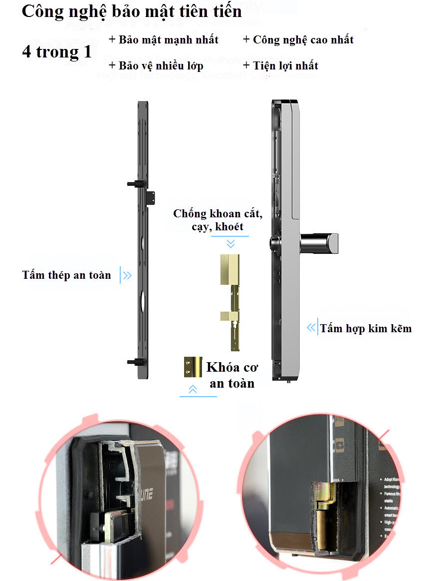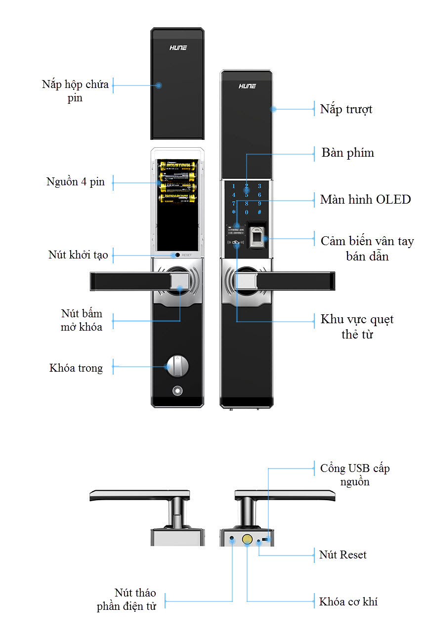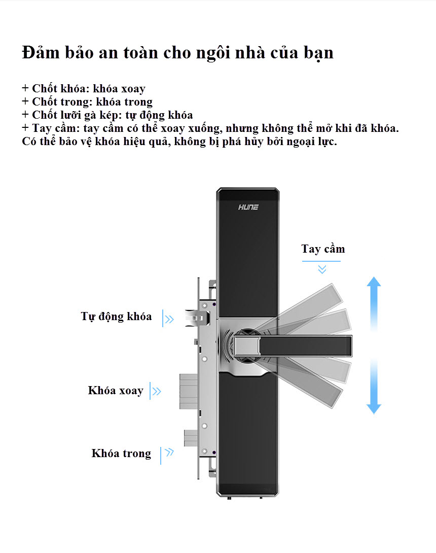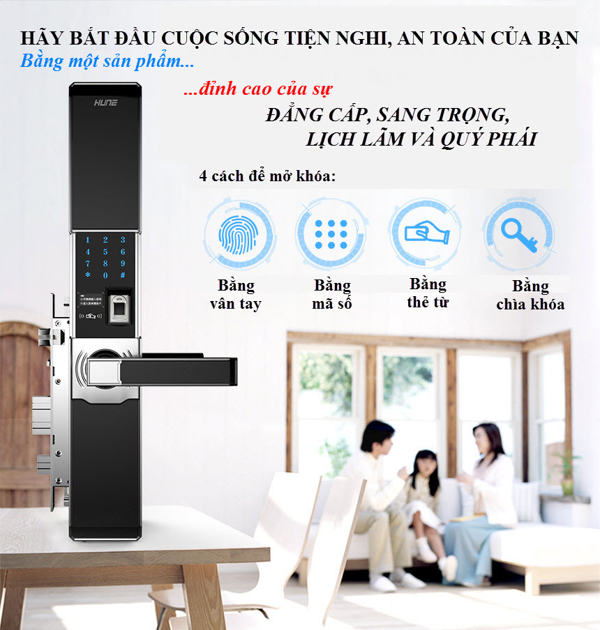 Khóa vân tay, mã số, thẻ từ, wifi HUNE 918-80-F được làm bằng hợp kim kẽm, rất bền và giữ cho khóa luôn sáng bóng như mới trong suốt 20 năm. Thích hợp cho nhà ở, căn hộ, văn phòng thương mại, trường học, chính phủ, bệnh viện…
